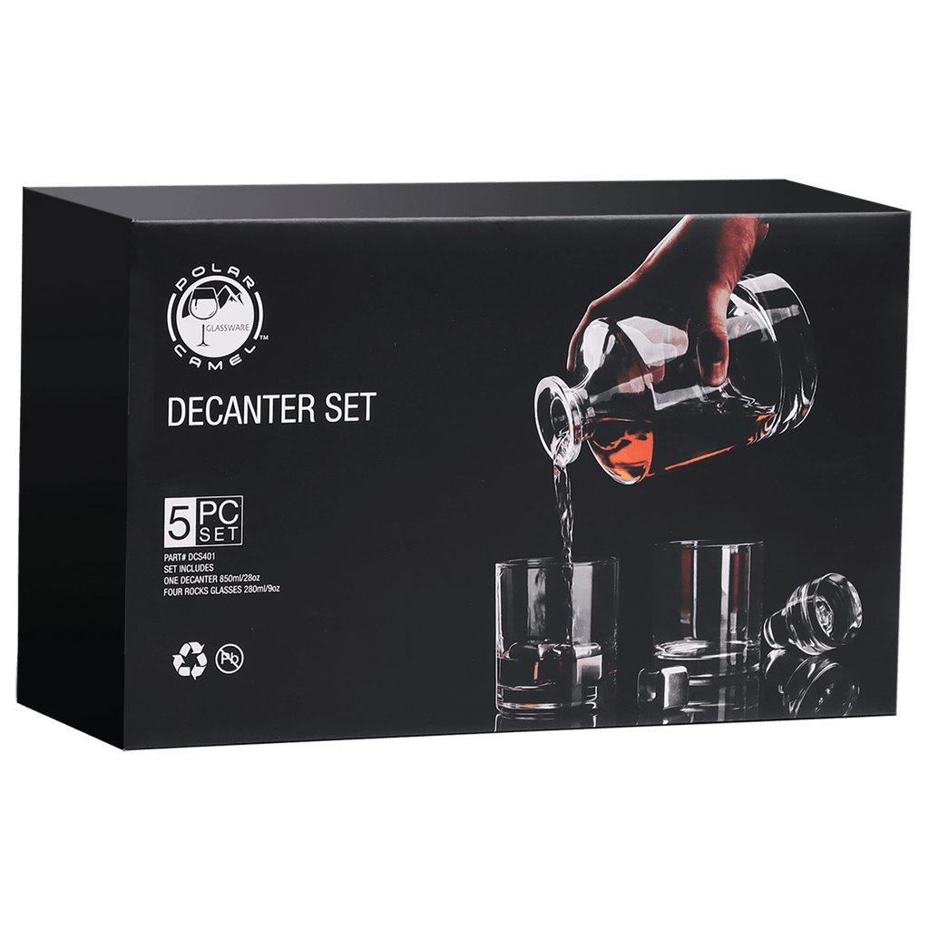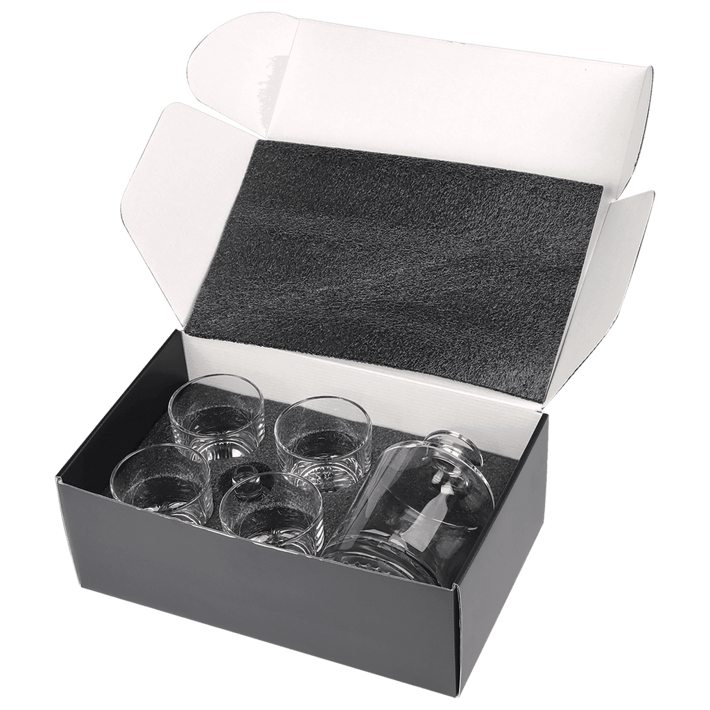 810ml Round Glass Decanter Set + Four Glasses Gift Box